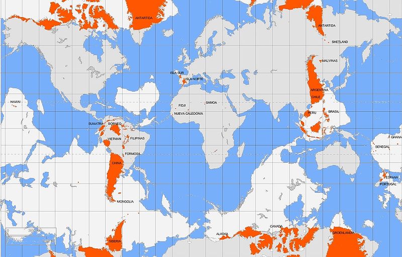 There are a few interesting things to point out about antipodes: If you dig from any point in the US you will not end up in China. The yellow areas are the reflections through Earth's center of land masses of the opposite Western Hemisphere.